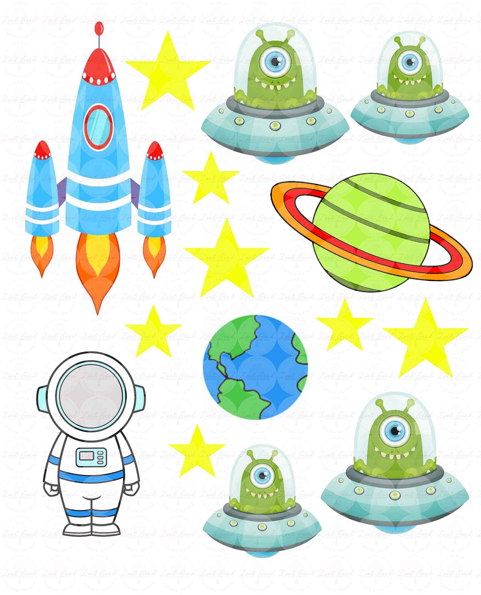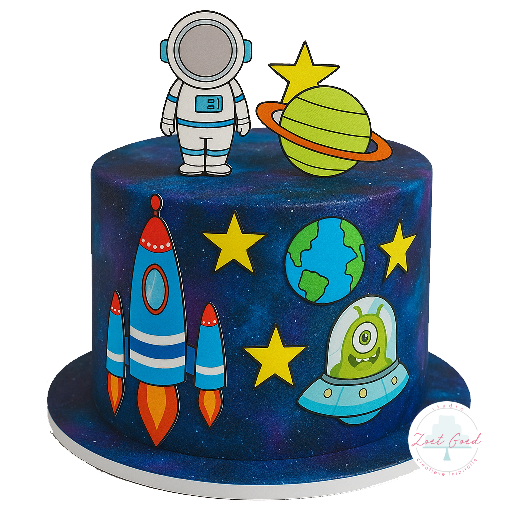Verzamel vel van eetpapier in ruimte / space thema om je taart eenvoudig zelf te decoreren.